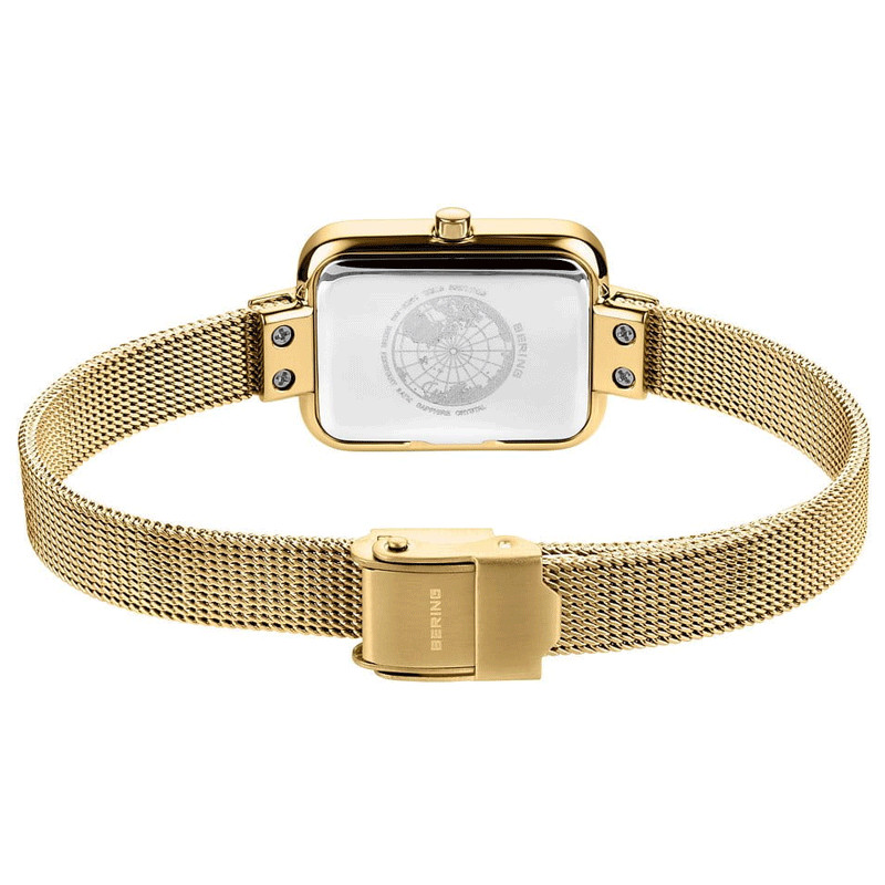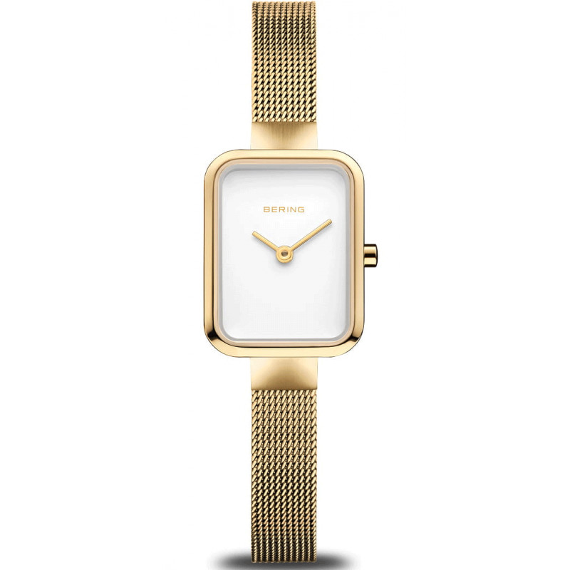Značka: Bering Model: Bering Classic Polished/Brushed Gold 14520-334 Puzdro: Ušľachtilá oceľ, priemer 20 mm, zafírové sklíčko Ciferník: Jednoduchý hranatý ciferník bielej farby Remienok: Ušľachtilá oceľ Mechanizmus: Quartz Vodotesnosť: 30m / 3ATM