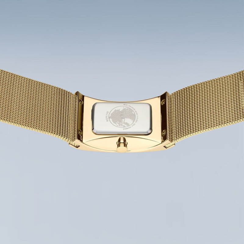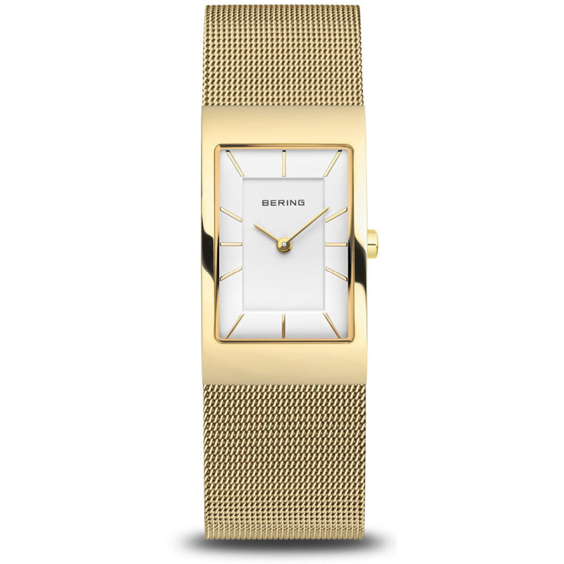 Značka: BERING 19632-730 Puzdro: ušľachtilá oceľ, zafírové sklíčko Ciferník: biely, ručičky a indexy v zlatej farbe Remienok: ušľachtilá oceľ Mechanizmus: quartzový strojček Vodotesnosť: 30m / 3 ATM