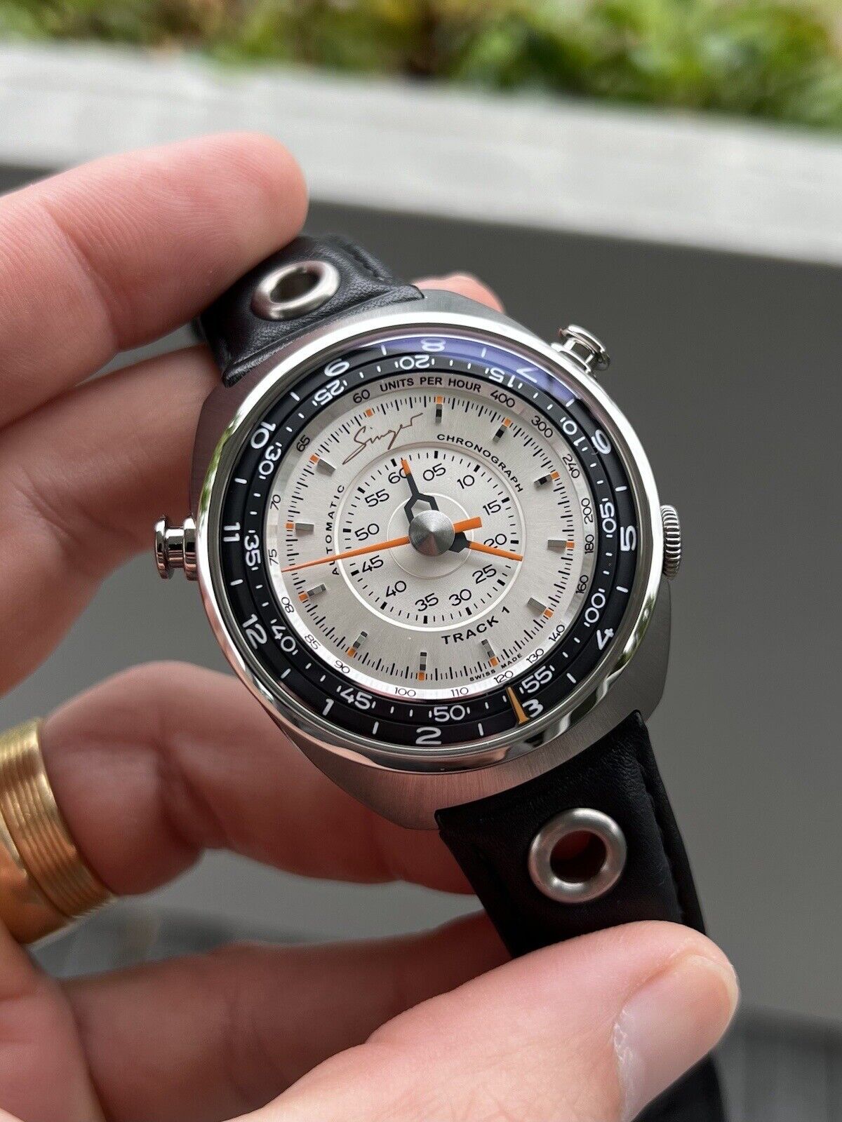 Jedným z modelov, ktorý okamžite upútal pozornosť, bol Singer Track 1 – Geneva Edition. Tento chronograf úplne prekopal tradičné usporiadanie ciferníka. Namiesto malých subciferníkov umiestnených po stranách ponúkol centrálny displej chronografu, ktorý umožňuje okamžité a intuitívne čítanie nameraného času. Technické riešenie bolo rovnako pôsobivé ako dizajn – výsledkom bol model, ktorý mnohí považujú za jeden z najlepších moderných chronografov vôbec.