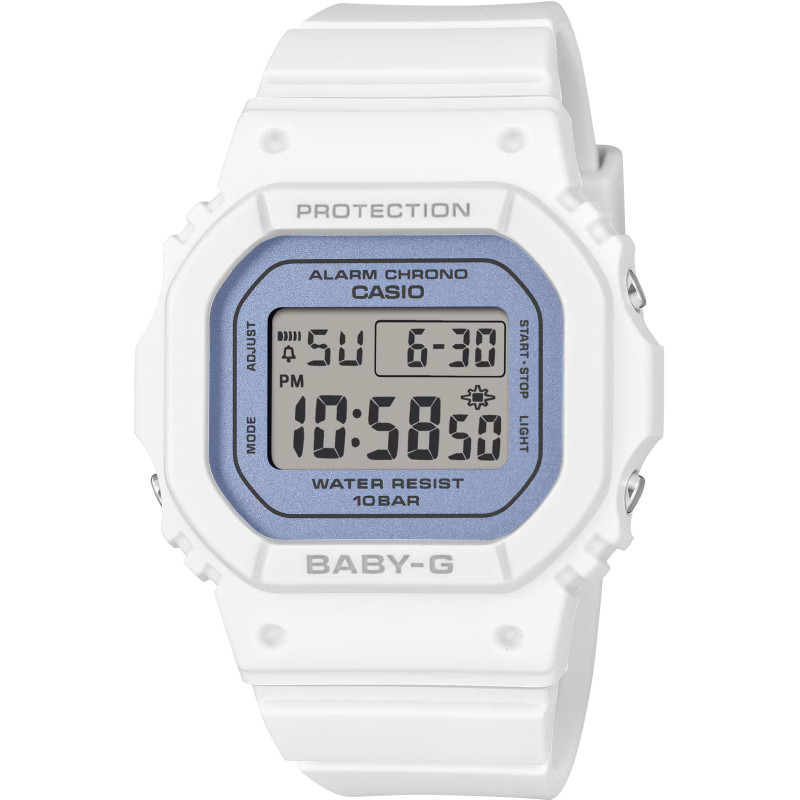 Dámske náramkové hodinky Napájanie z batérie Strojček 3489 Priemer puzdra 37,9 mm Puzdro v tvare osemhranu Plastové puzdro Biela farba puzdra Plastový remienok Biela farba remienka Digitálny ciferník Modrá farba ciferníka Ciferník s dvanástimi indexmi Materiál skla - minerálne sklo Odolné voči vode počas plávania Dátum Stopky Odpočítavacie...