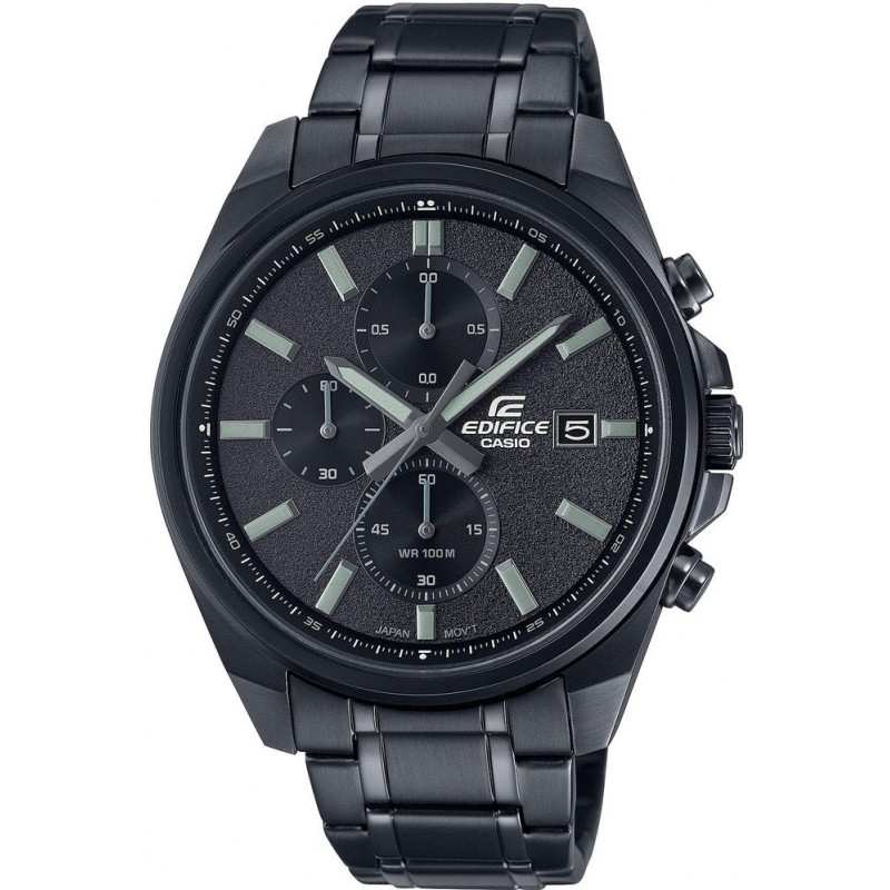 Pánske hodinky s dátumom a chronografom Minerálne sklo Neo-displej - svetelný povlak vodeodolnosť 100M modelová rada: EDIFICE Classic chronograf až do 60 minút puzdro a remienok s IP (ion plating) povrchovou úpravou