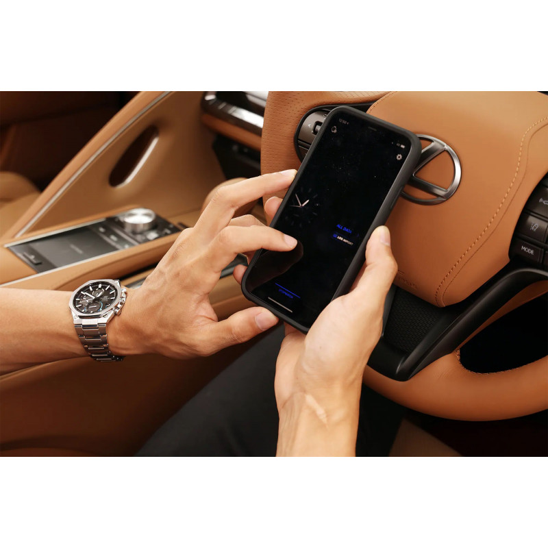 Elegantné pánske hodinky inšpirované motošportom Solárne napájanie Puzdro a remienok z ušľachtilej ocele Zafírové sklo Možnosť spárovania so smartfónom