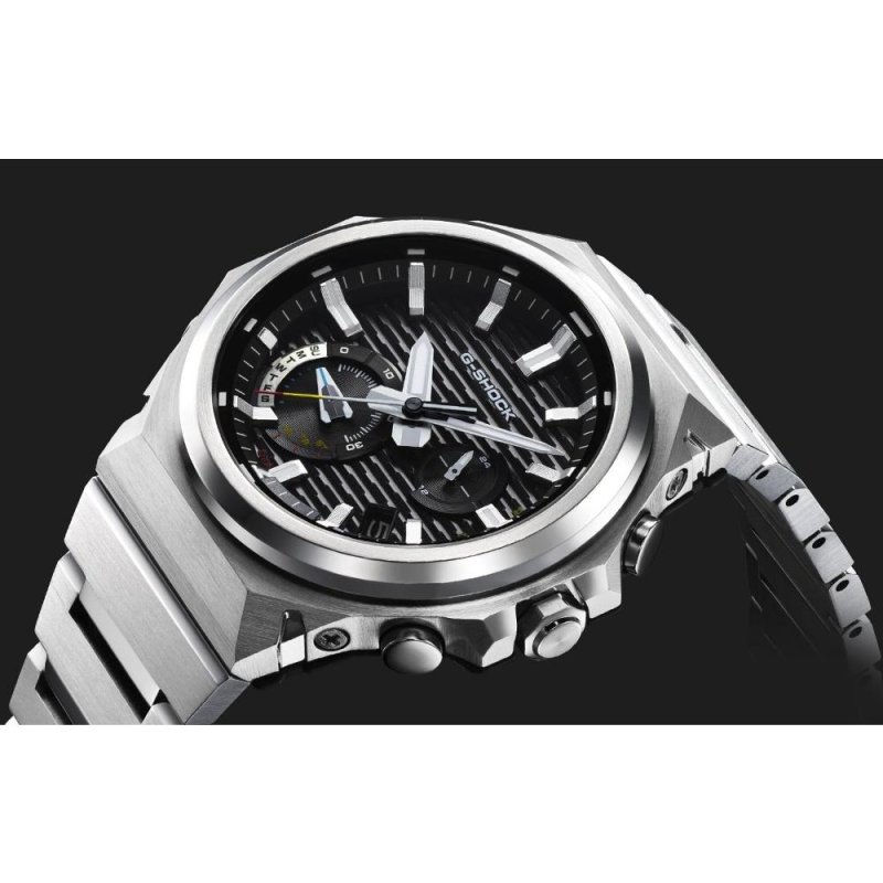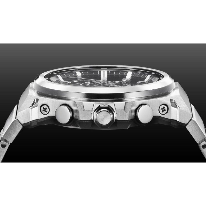 Pánske náramkové hodinky Solárne napájanie Strojček 5748 Puzdro v tvare kruhu Oceľové puzdro Strieborná farba puzdra Oceľový remienok Strieborná farba remienka Ručičkový ciferník Čierna farba ciferníka Ciferník s dvanástimi indexmi Materiál skla - minerálne sklo Odolné voči vode pri potápaní bez kysl. prístroja Dátum Stopky Odpočítavacie stopky LED...