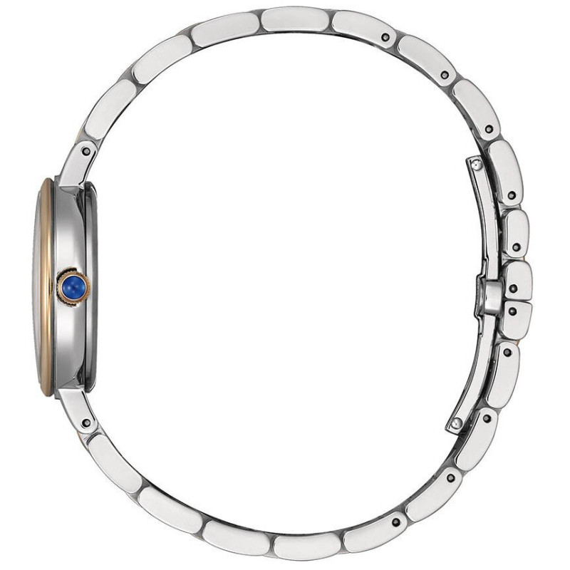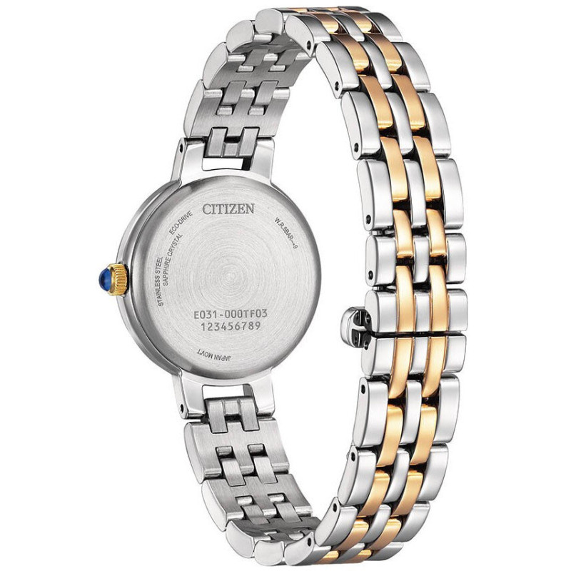 Značka: Citizen Model: Citizen L Eco-Drive EM0996-84Y Puzdro: Ušľachtilá oceľ, priemer 28 mm, zafírové sklíčko Ciferník: Perleťový ciferník s arabskými číslicami Remienok: Ušľachtilá oceľ Mechanizmus: Solárny Citizen E031 Vodotesnosť: 50m / 5ATM
