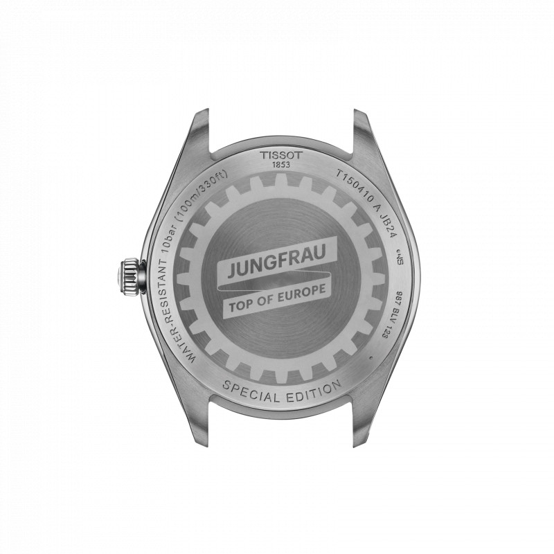 Pohorie Jungfrau je jemne vyryté na každom ciferníku, zatiaľ čo zadná strana puzdra nesie nápis 'Jungfrau – Vrchol Európy', čo označuje ich spojenie s týmto uctievaným švajčiarskym orientačným bodom.