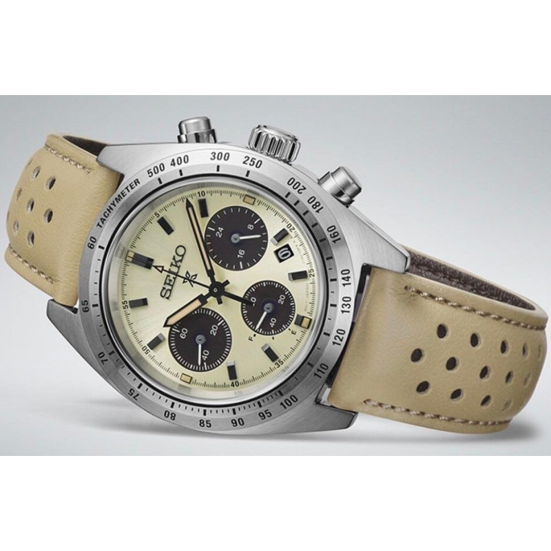 Značka a model: Seiko Prospex Speedtimer SSC959P1 (European Limited Edition) Určenie: pánske hodinky (športový chronograf) Modelová rada: Prospex Speedtimer Limitácia: približne 2 700 kusov pre Európu Sklo: zafírové sklo s vnútornou antireflexnou úpravou Puzdro: nerezová oceľ, priemer 39,0 mm, hrúbka 13,3 mm Ciferník: béžovo-krémový („panda“ dizajn)...