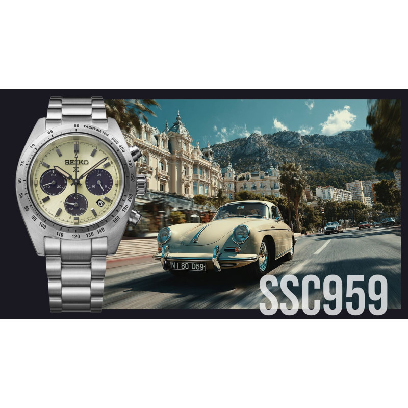 Seiko Prospex Speedtimer SSC959P1 je špeciálna európska limitovaná edícia z ikonickej kolekcie Prospex Speedtimer. Tento model bol vyrobený v obmedzenom počte približne 2 700 kusov pre európsky trh, čo mu dodáva zberateľský charakter a exkluzívne postavenie v rámci série. Speedtimer nadväzuje na historické chronografy Seiko z 60. rokov, ktoré patrili medzi prvé automatické chronografy na svete.
