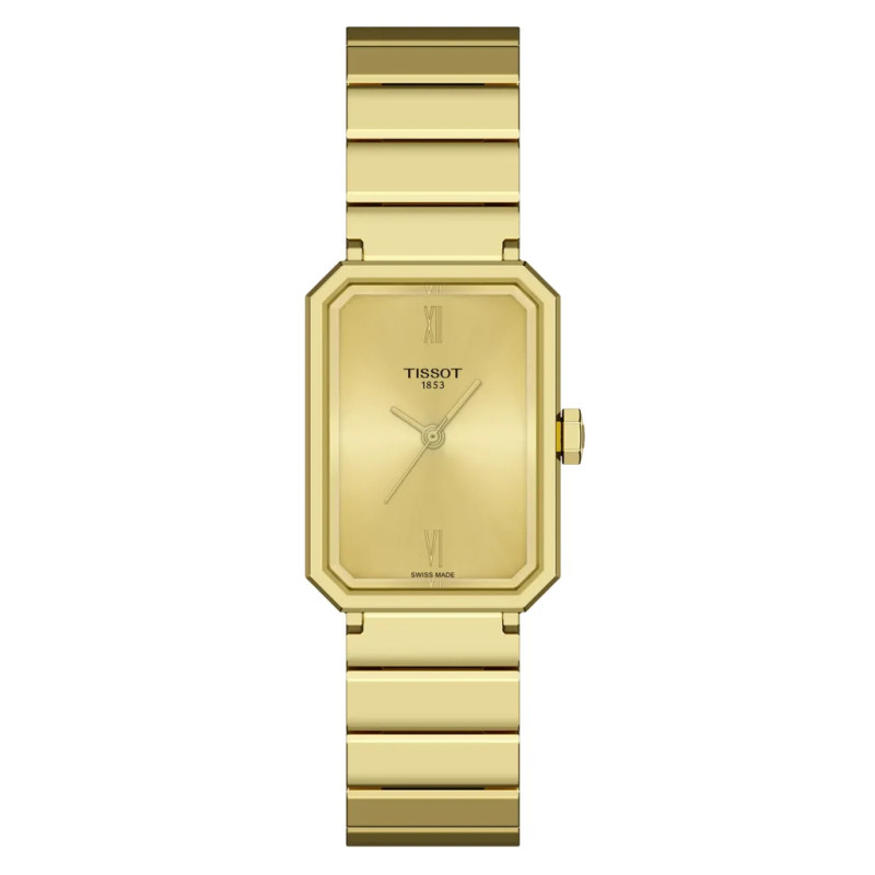 Značka: Tissot Model: TISSOT SRV T160.110.33.023.00 Puzdro: Ušľachtilá oceľ, priemer 30 mm, zafírové sklíčko Ciferník: Zlatý ciferník s rímskymi číslicami Remienok: Ušľachtilá oceľ Mechanizmus: Batéria ETA 902.101 Vodotesnosť: 50m / 5ATM
