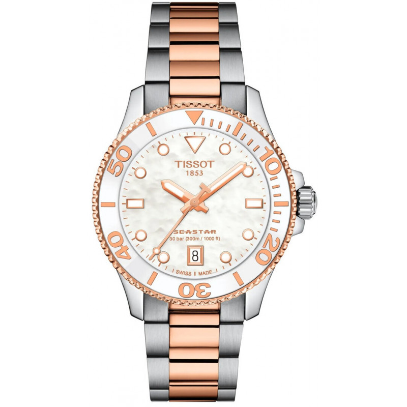 Značka: Tissot Model: Tissot Seastar 1000 Quartz T120.210.22.111.00 Puzdro: Ušľachtilá oceľ, priemer 36 mm, antireflex zafírové sklíčko Ciferník: Biely ciferník s ručičkami a indexami potiahnutými luminiscenčnou vrstvou Remienok: Ušľachtilá oceľ Mechanizmus: Quartz. ETA F05.412 Vodotesnosť: 300m / 30ATM