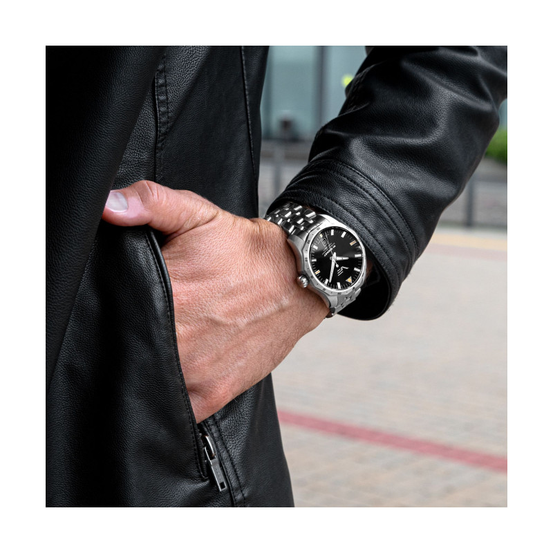 Pánske náramkové hodinky v jedinečnom dizajne Automatický náťah strojčeka Puzdro a remienok z ušľachtilej ocele Zafírové sklíčko