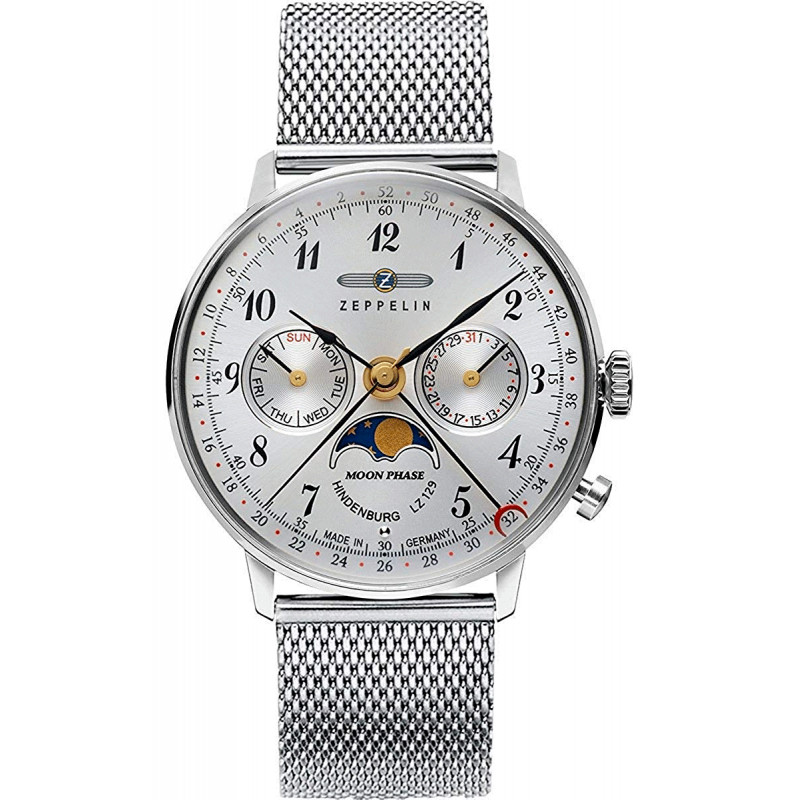 Značka: Zeppelin Model: ZEPPELIN LZ129 HINDENBURG 7037M-1 Puzdro: Ušľachtilá oceľ, priemer 36 mm, akrylátové sklíčko Ciferník: Biely ciferník s arabskými číslicami a retro vzhľadom Remienok: Ušľachtilá oceľ Mechanizmus: Quartz. Ronda 706.B Vodotesnosť: 30m / 3ATM