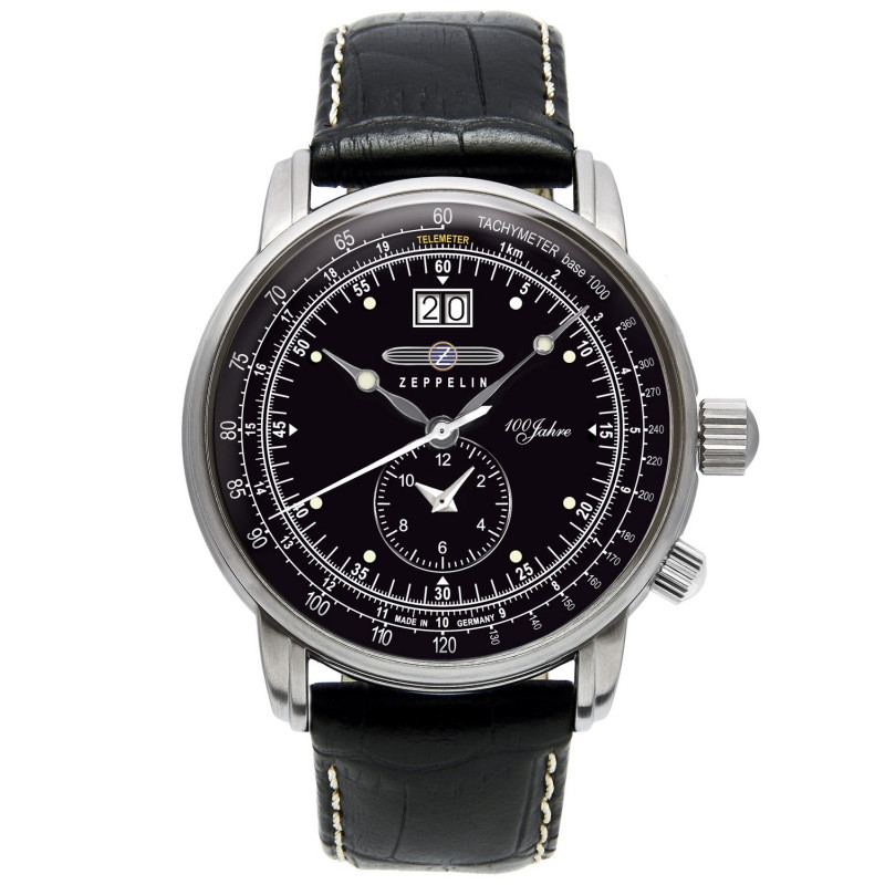 Pánske hodinky s luxusným nádychom Oceľové puzdro doplnené koženým remienkom Modelová séria: 100 Jahre Zeppelin